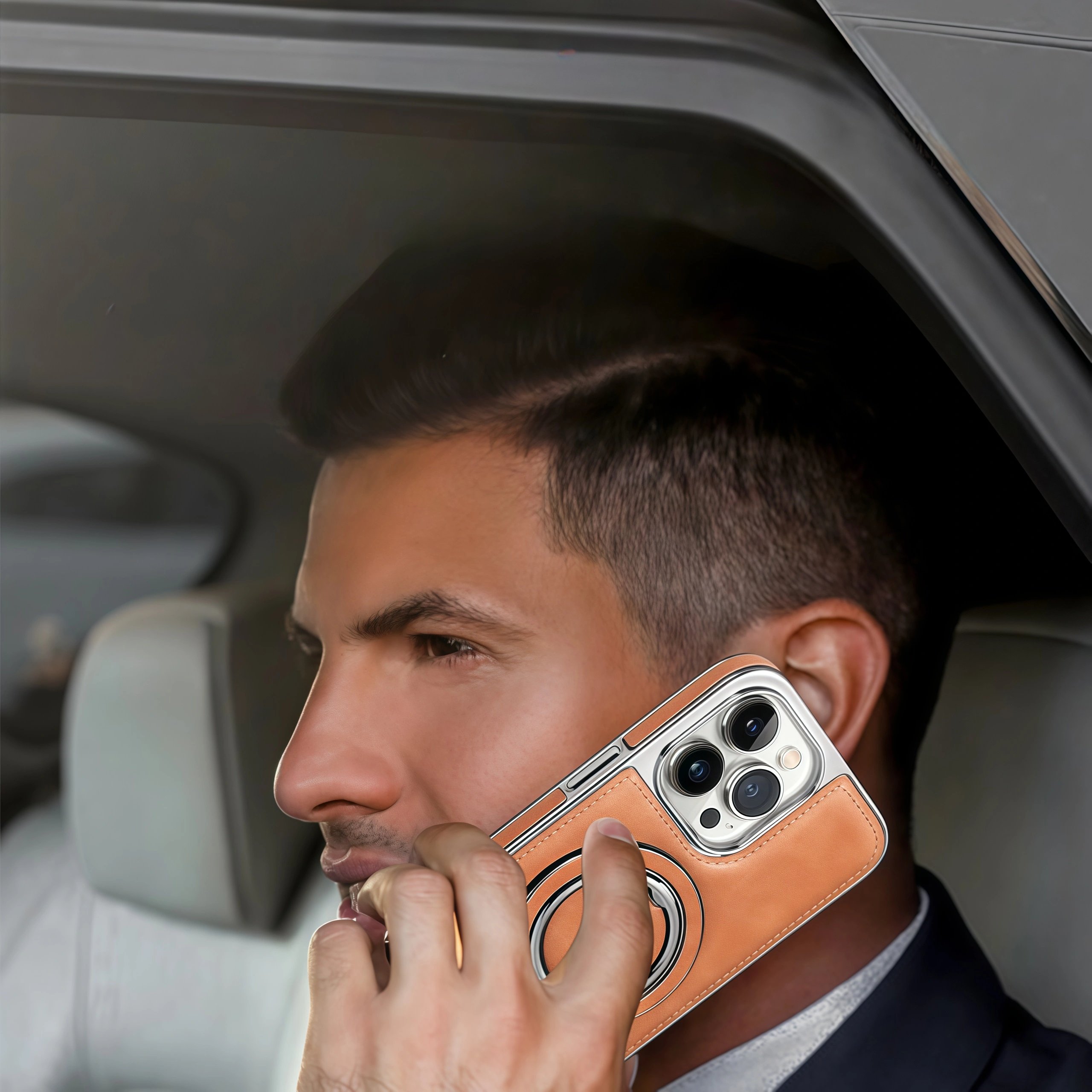 Feita de couro sintético macio e luxuoso com acabamento fosco elegante , esta capa confere ao seu iPhone um visual sofisticado e premium . Ideal para reuniões de negócios, encontros para um café ou saídas à noite casuais — é elegância que você sente.